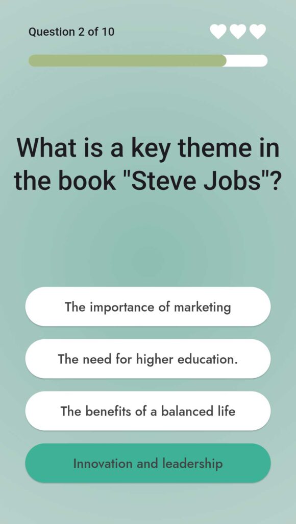 Complete each quiz set to unlock the next one — answer the majority of questions for one book correctly, and you’ll be able to progress to the next book in the series.